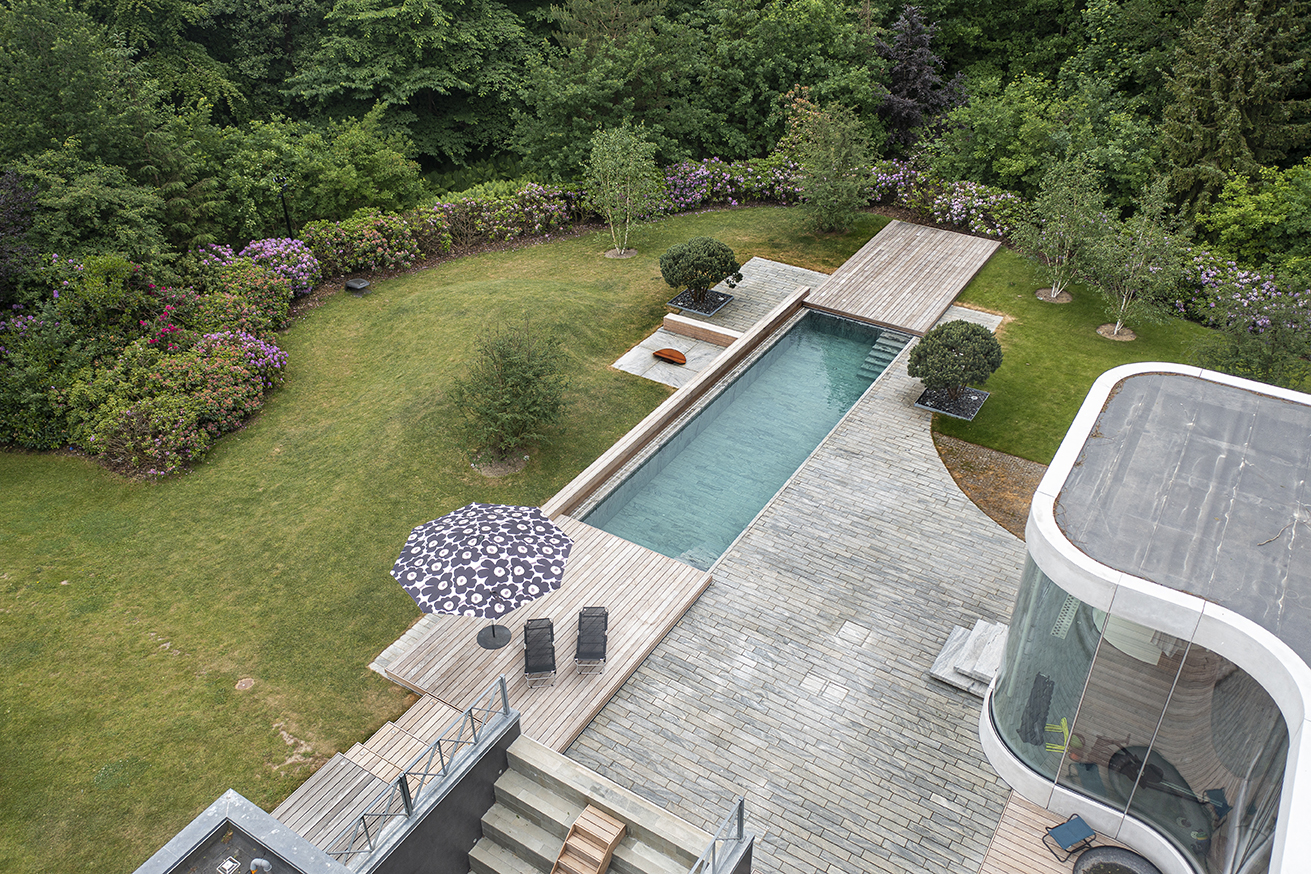 Vid anläggningen av den vackra simbassängen vid detta privata hem har man också valt Lithomex L20 styrkfog.