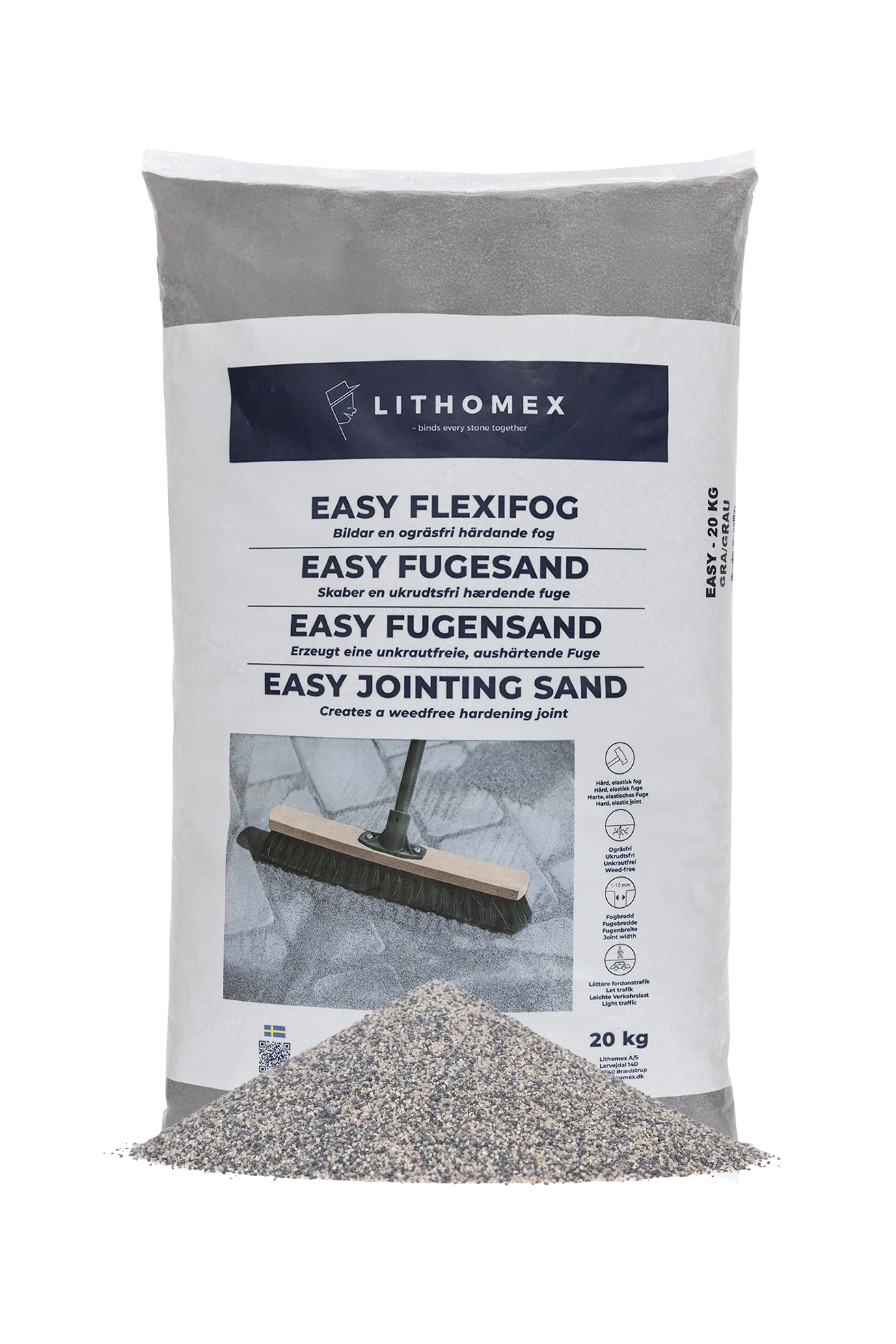 EASY Flexifog är det perfekta fogmaterialet för uteplatser, gångar och villainfarter, där du vill ha en ogräsfri elastisk fog.