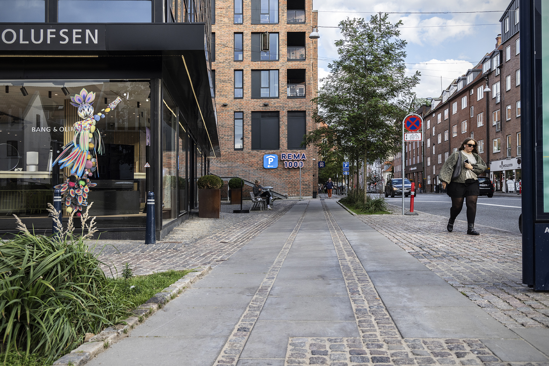 I en lång rad av landets kommuner anläggs underhållsfria trottoarer i en kombination av betongsten och natursten, vanligtvis kända som ”Köpenhamnsk gatsten”. Dessa trottoarer är zonindelade, där betongstenarna utgör gångzonen och naturstenarna (chaussésten) fungerar som led- och avskiljningslinjer.